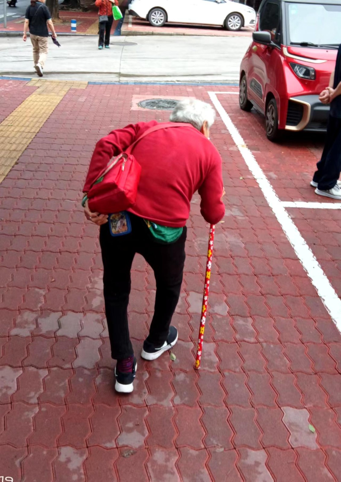 在广西壮自治区柳州北雀路教堂,笔者看到一位老家是安徽的老姊妹,她今年86岁,因为腰有病,弯腰驼背,拄着手杖来到教堂参加主日聚会。