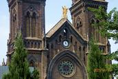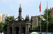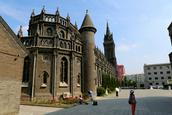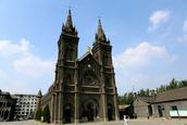 广场对面就是著名的沈阳南关教堂,也就是“耶稣圣心堂”。在宽阔广场的映衬下,一座欧洲文艺复兴时期的建筑形式、典型的哥特式建筑群高耸,青色的墙体,透着端庄、沉着,虽经近百余载涉寒蒙雪,更显华美庄严。