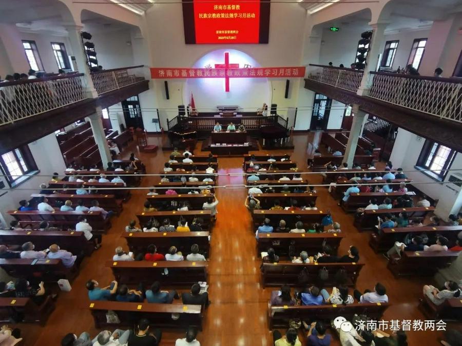 为深入学习贯彻党的二十大精神和习近平法治思想,不断深化民族宗教政策法规知识的宣传普及。按照2023年全省“民族宗教政策法规学习月”活动部署要求,6月29日上午,山东省济南市基督教两会在经四路教堂举行“民族宗教政策法规学习月教育”活动。市基督教两会班子成员、各区县三自班子成员、活动场所负责人、牧师、长老、毕业神学生等教牧人员共370余人参加活动。
