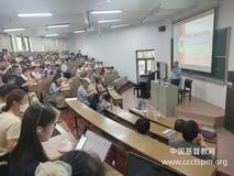 上午九点三十分,市基督教协会会长杨森林牧师主持讲座, 在会众集体歌诗《圣灵如风》的歌声中拉开帷幕,郭部长发表了热情洋溢的致辞,对蒿牧师及寇牧师的莅临指导表示热烈欢迎:结合目前天气炎热,强调要抓好堂点场所消防安全和防疫工作。并对基督教中国化社会主义核心价值观和中华优秀文化的浸润进行了阐述,要求进一步深刻领会对标对表:一是要爱国爱教,共建富强民主和谐文明美丽家园;二是作光作盐,促进自由平等公平法治和谐氛围;三要荣神益人,争做爱国敬业诚信友爱的好公民。他希望基督教会要积极弘扬社会主义核心价值观,始终坚持基督教中国化方向,为全面建成小康社会实现中华民族伟大复兴的中国梦贡献力量,为临汾市民族团结宗教和睦贡献基督教界的力量。