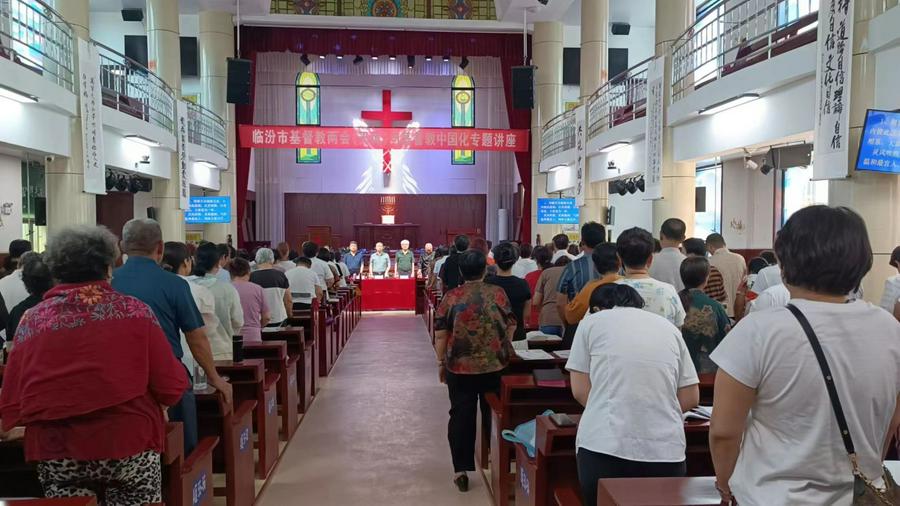 7月14日上午,山西省临汾市尧都区城区基督教堂座无虚席,一堂名为“天上吹来清风——《天风》与基督教中国化专题讲座”在这里隆重举行,临汾市基督教两会特邀《天风》杂志总编辑蒿志强进行专题分享,甘肃省基督教协会副会长兼总干事寇建国、市委统战部副部长,市民宗局局长郭琰出席,市基督教两会班子成员、各县市两会负责人及神学生和尧都区基督教会的教职人员(牧师长老、传道员,各牧区负责人,城区各片长,各团契负责人、骨干、执事、各活动点负责人)及热心读者400余人参加。