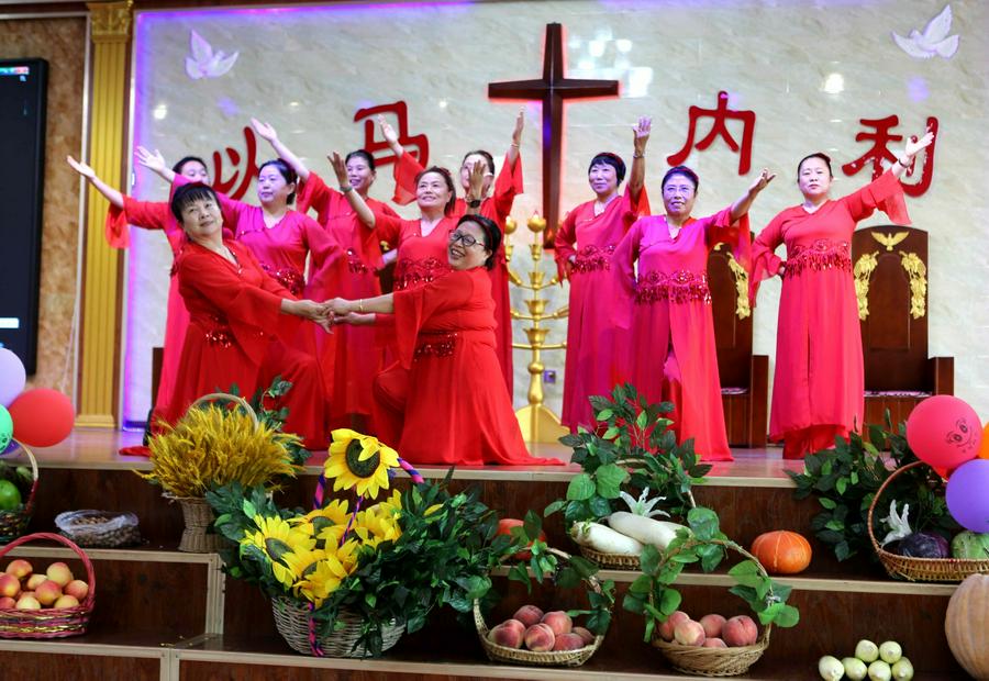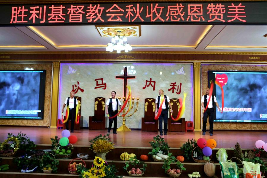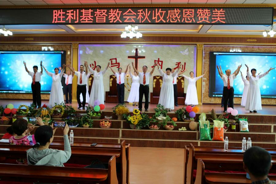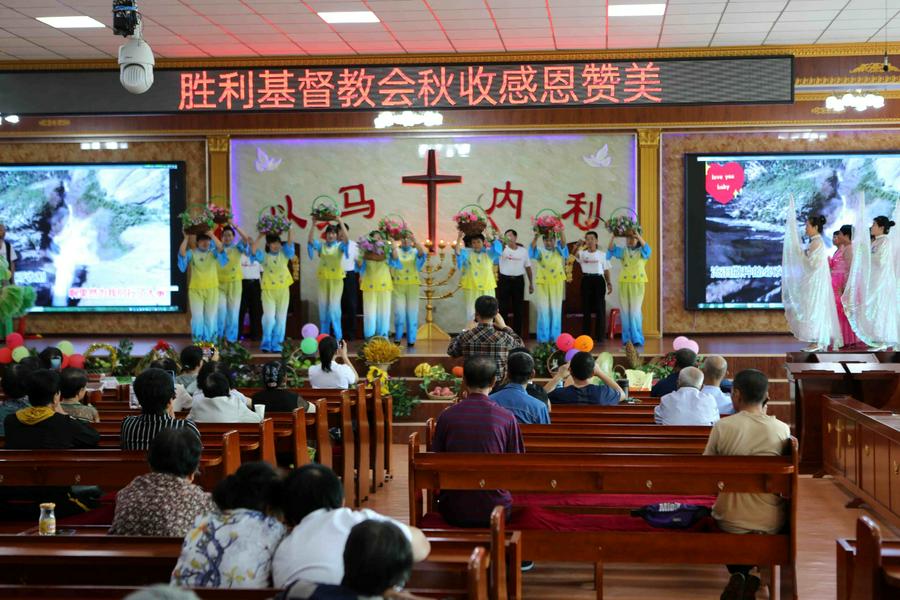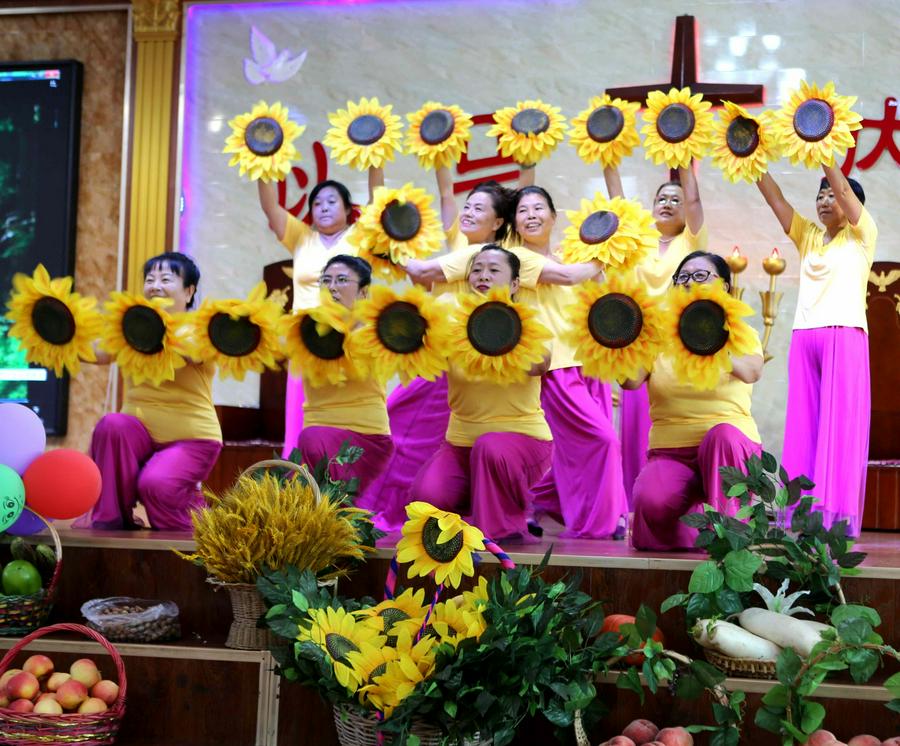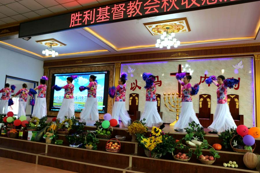今天胜利教会的秋成感恩节赞美活动,是信徒们在农忙和工作之余排练的,大家都是带着一颗感恩的心来朝拜圣三一的真神,以歌舞的形式表达感恩之情。
