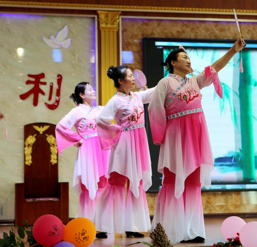 之后,在隆重的开场舞《敬拜主》、《欢呼收割》之后,史秀臣长老带领教会的弟兄姊妹把舞蹈、赞美诗歌、器乐合奏、夫妻舞蹈、青年律动等节目献给三一的神。