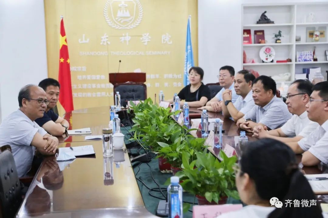韩庆新与省基督教两会驻会班子成员和教师代表座谈交流,对山东神学院近年来始终高举爱国爱教旗帜、深入推进中国化的神学教育、不断提高教学质量和规范化办学水平等给予了充分肯定。