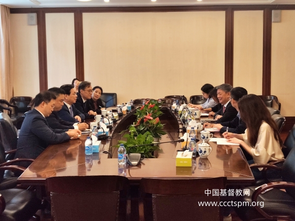 吴巍牧师对客人们的到来表示热烈欢迎。他表示,中国基督教两会非常重视韩国对华基督教交流协会的来访,希望进一步推动中国教会与韩国教会的友好往来。中国教会坚持独立自主自办原则,与海外教会交往中注重互相尊重、平等、友好的态度,包括尊重对方所处的社会环境,在这一点上,韩国对华基督教交流协会给予了我们充分的理解和尊重。基督教传入中国和传入韩国的时间相差不远,但在两国人民心中的观感有差异,这是由一定的历史原因造成的。中国教会今天正在推进基督教中国化,要努力消除基督教在民众心目中的“洋教”印象,耶稣基督不仅是我们个人和教会的祝福,更是民族与国家的祝福,中国教会要用中国人自己的方式去见证耶稣基督的恩典,让我们的教会适应社会,并成为社会发展中积极的、进步的力量。也期待未来能够与韩国教会加强沟通,增进合作,搭建桥梁,深化友谊。