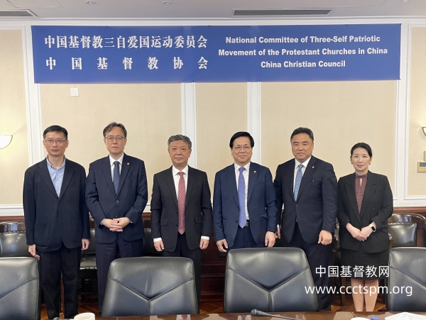 2023年9月8日下午,中国基督教协会会长吴巍牧师在会所接待韩国对华基督教交流协会会长李永勋牧师一行并座谈。中国基督教三自爱国运动委员会秘书长顾梦飞同工、中国基督教两会海外联络部临时负责人顾静琴同工等参加接待。会上双方共商合作,围绕基督教中国化、学术研究、社会文化等话题进行了友好交流。