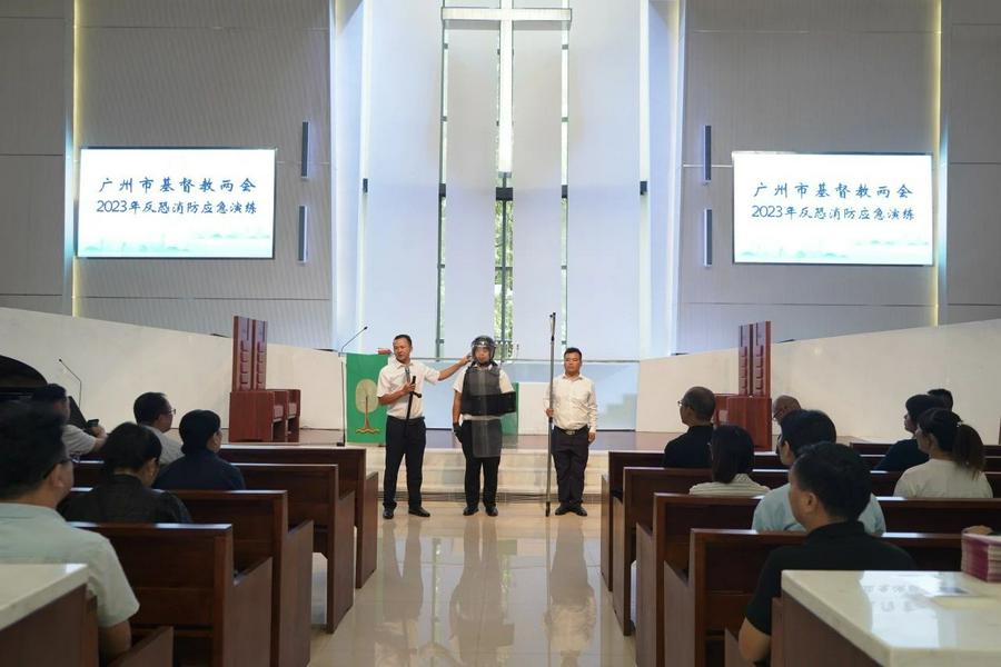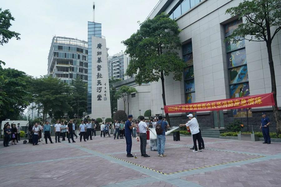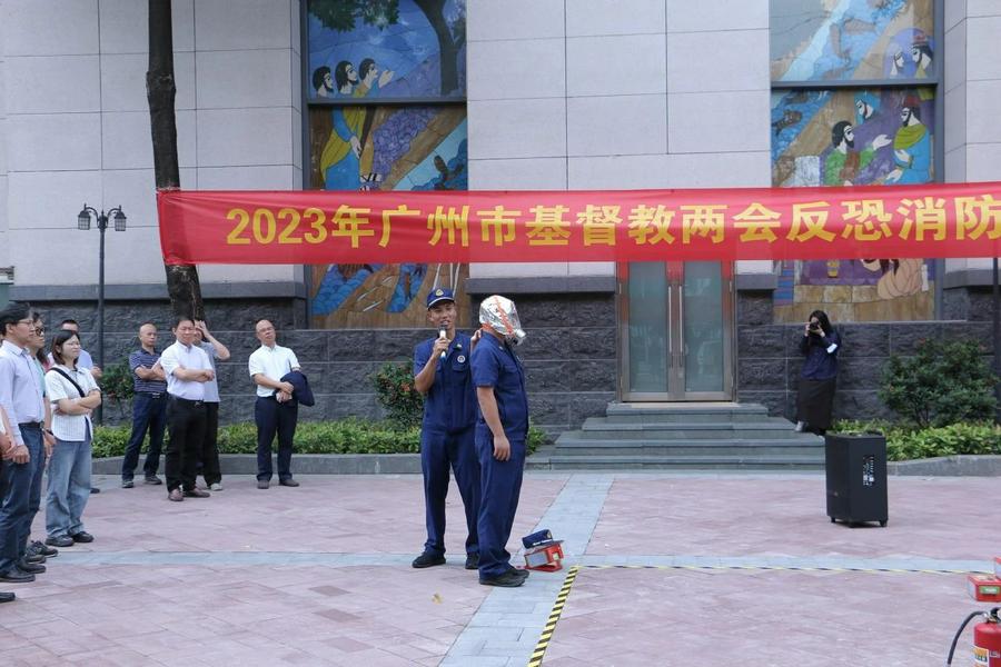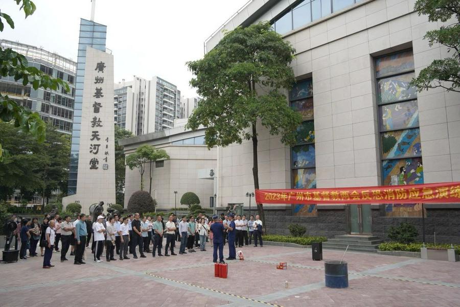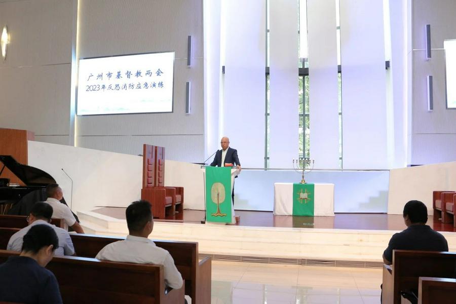 2023年10月17日上午,广州市基督教两会在广州基督教天河堂举行2023年反恐消防培训演练活动。全市各堂点教职人员及市两会办公室全体同工近90人参加演练活动。广州市民族宗教事务局宗教二处林兴先处长出席演练活动并作工作指导。广州市基督教协会副会长兼总干事吴忠武牧师主持。