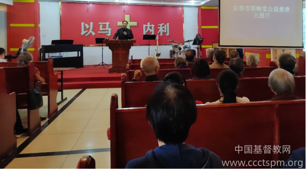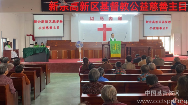 10月15日,新余市基督教两会在全市举办了“基督教公益慈善主题日”活动。渝水堂主日崇拜宣讲基督教公益慈善的意义,省基督教三自爱国运动委员会主席、新余市基督教两会主席、会长李云根牧师证道。他强调,我们当效法主耶稣基督,帮扶鳏寡孤独者和贫穷软弱者,同时,关爱弱势群体也是我们中华民族的传统美德,教会通过公益慈善主日的宣传,希望众信徒关爱周围有需要的人,成为爱国爱教的好公民。