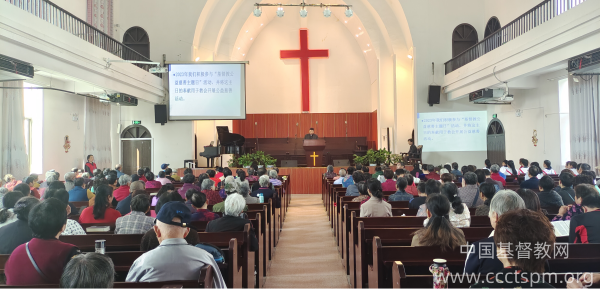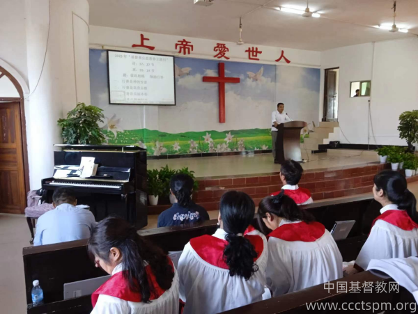 江西圣经学校在实习教堂恩典堂开展活动,省基督教三自爱国运动委员会副主席林峰牧师以“彼此相顾,勉励行善”为题证道。