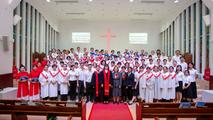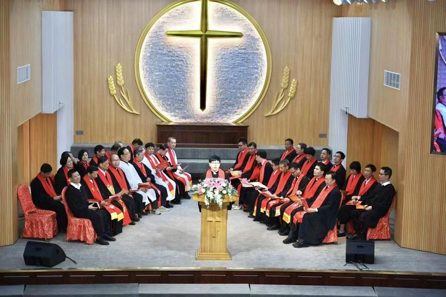 莆田市基督教协会副会长黄家基同工带领牧师团启应祷文;莆田市基督教三自爱国运动委员会主席朱益民牧师举行差遣礼,勉励信徒学像耶稣基督的样式,服务人群,服务教会,勇往直前,为主基督耶稣作佳美的见证。