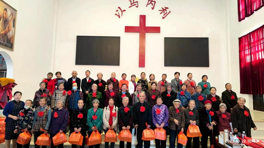 2023年10月20日,他们组织教会同工参加了社区的活动,大家表演了旗袍秀《映山红》,合唱《共筑中国梦》,乐队演奏《我的祖国》等歌舞、器乐合奏,精彩的表演受到地方有关部门和群众的好评。10月22日主日,在重阳节前夕,他们在聚会中把老年人请到前排就坐,提前送上节日的问候,为他们戴红花、送礼物、按照中国传统礼仪送上一碗“长寿面”,大家合影留念。老人们非常受感动,感谢神的赐福,也感谢教会的爱。这呈现出一派和睦同居、喜乐欢欣的场面。10月23日重阳节当天,教会由刘金彩牧师带队再次组织同工来到多年送爱心的“关系户”——佛祖岭福利院。以往,教会给老人们送过围巾、袜子、帽子、手套等御寒物品,这次大家把教会弟兄姊妹自己动手做的1000个大馒头送到老人的手里,对他们表示节日的问候。