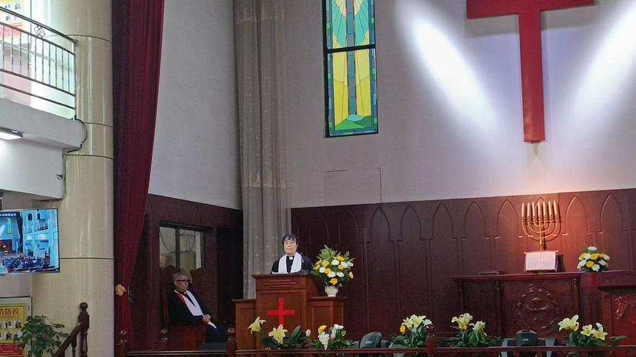 教会负责同工陈丽长老致辞,她深情感恩,因为历代宣教士和神的仆人为主的劳苦牺牲,才使我们今天得享福音恩泽。他们的牺牲、奉献,激励、感动着我们,我们要效法他们的榜样见证,不断传承发扬先辈的美好品德,更加在各种处境中,积极努力为教会尽心竭力献身,尽上忠心和本分,砥砺奋勇前行,同心合意兴旺福音,作光作盐荣神益人,把我们的教会建成合神心意的金灯台。她强调,我们要一如既往讲好基督教过去的故事,讲好历代先贤忠心奉献的佳美见证,讲好我们当代基督教会立足新世纪的美好侍奉,省察我们侍奉的初心和使命,为主甘心乐意做出我们基督徒应有的贡献。