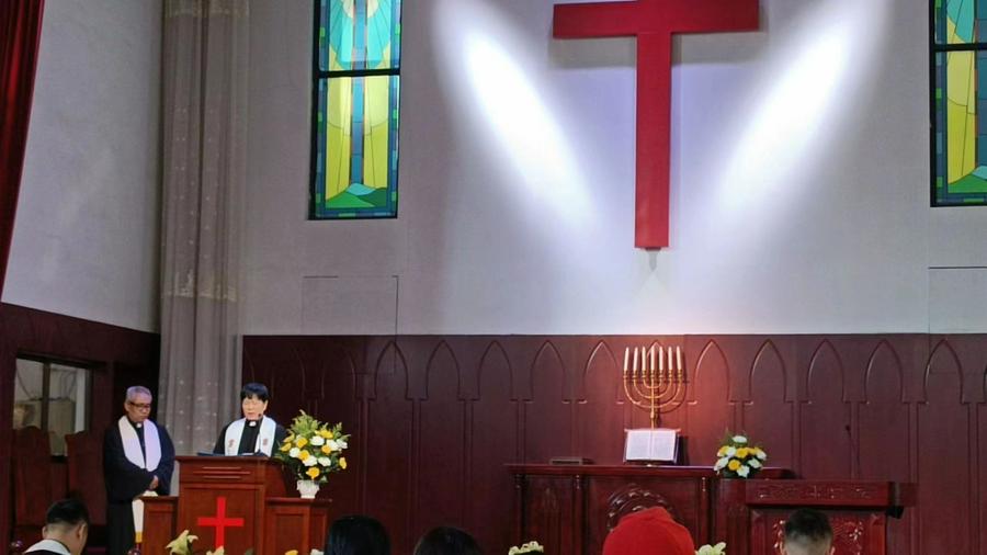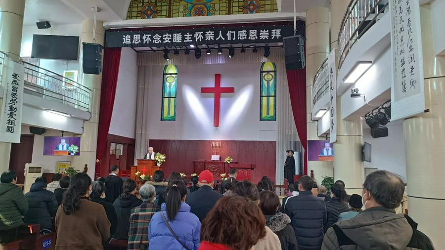 11月22日,山西临汾市尧都区基督教会在城区教堂举办“追思安息睡主怀中的亲人们”感恩崇拜。这是疫情三年后按照教会传统首次举办的大型追思纪念活动。区两会班子成员、全区7个牧区、城区4大片区、各团契的负责人和同工及离世基督徒的部分亲友代表100多人怀着崇敬的心情参加。教堂气氛庄严肃穆,圣台上黄白相映的鲜花寄托人们对逝者缅怀,正中灯火交织的鲜红十字架给人盼望和力量。