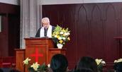 此后播放了《百年殉道血》的短视频,通过展现在义和团运动中山西为主殉道的241名宣教士中有代表性的十几位的临终遗言。一个个生动的面孔,字里行间,掷地有声,一腔为主甘愿舍命为福音广传的热情感人至深。令人震惊的是,在这些人中,宣教士子女人数竟超过四分之一,有的仅有几岁十几岁。他们与父辈一样,为把福音传给未得之民,付出了宝贵的生命。他们不是为别人,而是为了我们而死,本来与我们没有关系,却为了中国宣教献上了宝贵生命。今天临汾乃至山西及全国基督教会复兴,正是殉道者的血浇灌出来的。他们也是血肉之躯,也有儿女情长,但为主舍弃一切来到陌生的国度,在艰难困苦中为主奔波劳碌,效法基督成为活祭,虽死犹荣,他们在主里面的付出蒙主纪念,功绩永不磨灭。