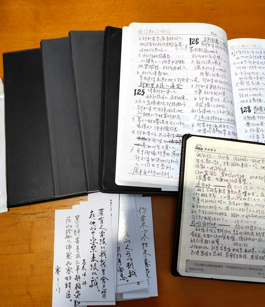 “圣经,是我最喜悦,最喜欢诵读的一本书,是圣经牧养了我、鼓舞我、激励我,让我活到至今。‘圣经都是神所默示的,于教训、督责、使人归正、教导人学义,都是有益的。’圣经,是我每天必读的。我还抄写圣经的话,把精句还抄下来。我每天离不开圣经,爱不释手。