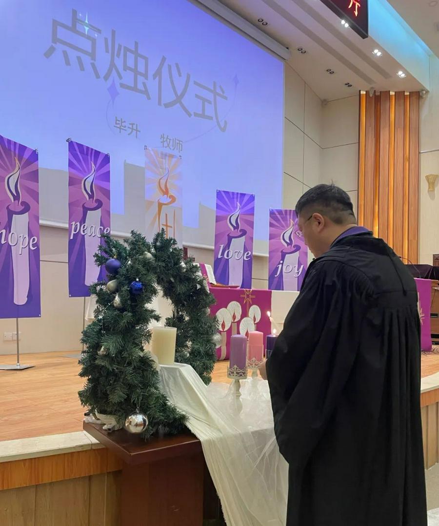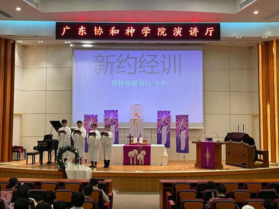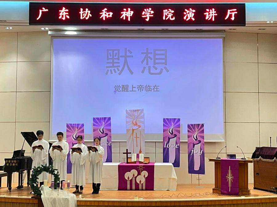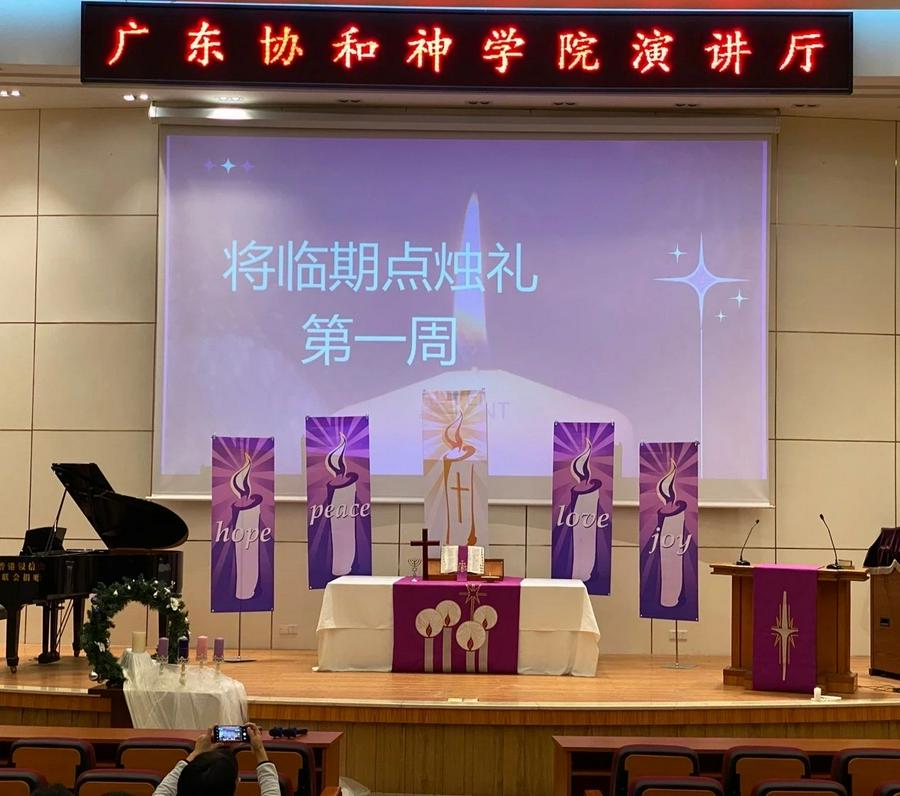 2023年12月4日晨间,广东协和神学院在演讲厅举行了将临期第一周点烛仪式。