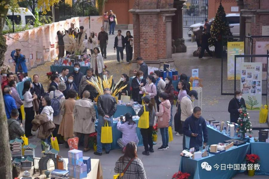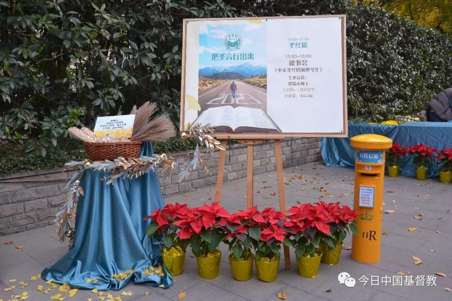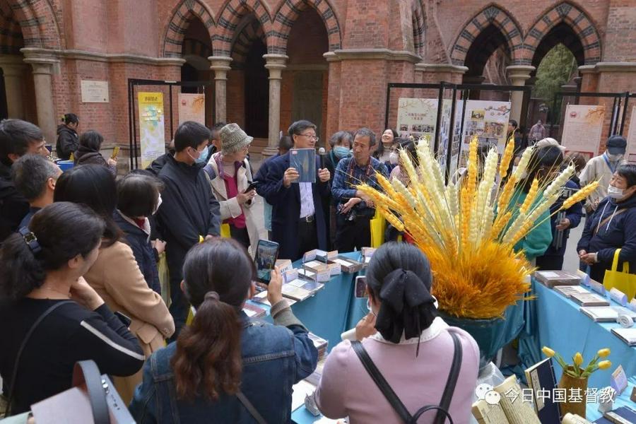 此次活动在圣三一堂广场特设圣经展,主要展示近几年来基督教全国两会出版的系列圣经、圣经工具书、圣经文创及少量珍贵的早期中文译本圣经。展览引入“中国风”元素,凸显圣经与中国传统文化的融入,反映基督教中国化在圣经事工上的体现。古色古香的早期中文译本系列圣经、珍贵稀有的藏品圣经、紧跟时代的《天风》月刊,以及现场60块展板通过图文并茂的方式向大家展示着中国教会圣经事工的发展和圣经印刷事工的进步。
