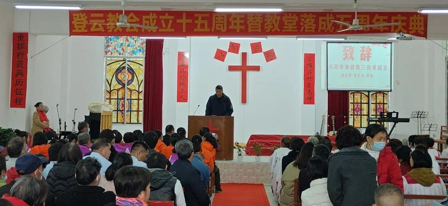 2023年12月16日上午,河源市龙川县登云教会成功举办成立15周年暨教堂落成5周年庆典活动。市基督教三自爱国会副主席徐光东牧师出席庆典活动并致辞祝贺。来自江门、深圳、东源、连平及本县各教会的教牧同工和弟兄姊妹约230人欢聚一堂,共沐主恩。