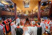 悠扬的钟声响起,庆典感恩崇拜主礼人福安市基督教三自会主席、福安城关基督教堂主任陈绍通牧师宣召,伴着《教会根基歌》赞美的歌声,教牧团、圣歌团步入圣堂。
