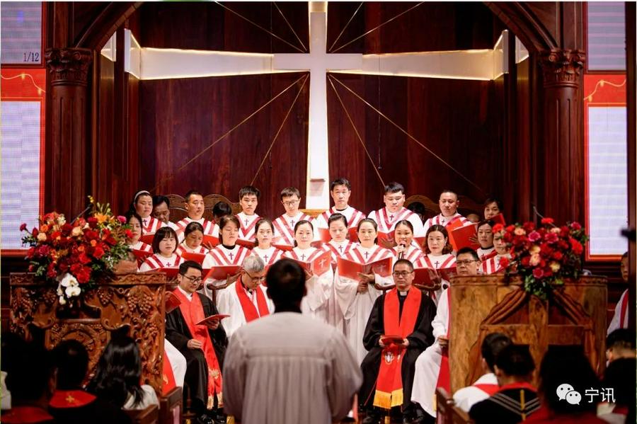 感恩崇拜上,宁德北门基督教教堂青年诗班献唱《奇异恩典》《道路真理与生命》,林秀乐牧师引用申命记8章1-10节以《记念神恩 勇担使命》为题分享圣言,共勉在记念之中感恩,感恩神的带领、供应;在记念之中反思,反思上帝的心意、慈爱、供应和赐福;在记念之中谨守诫命、遵行主道、敬畏上主,在新时代中作好门徒、传好福音。