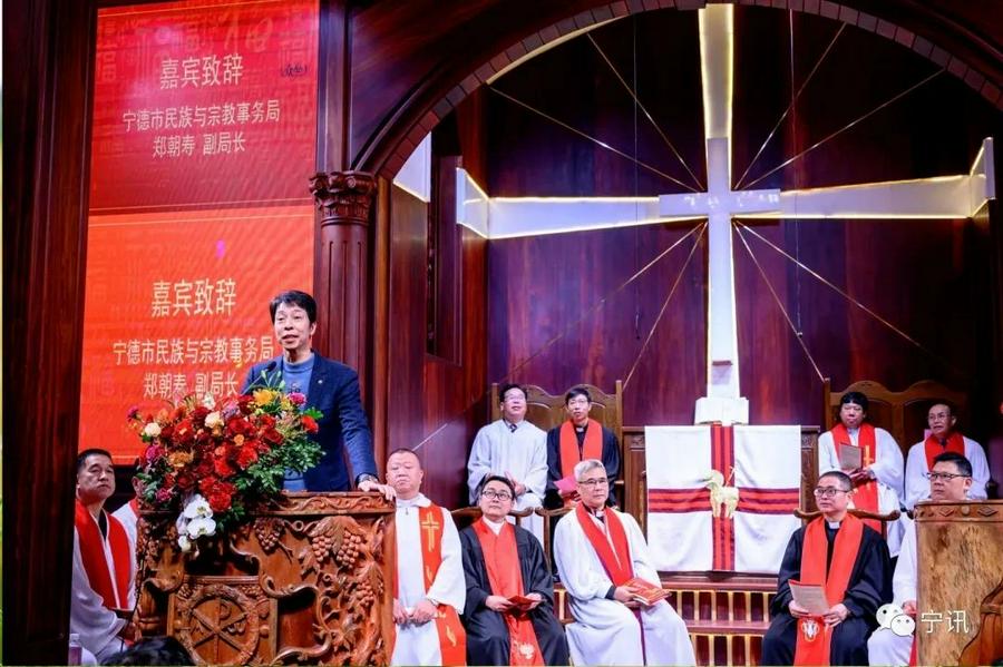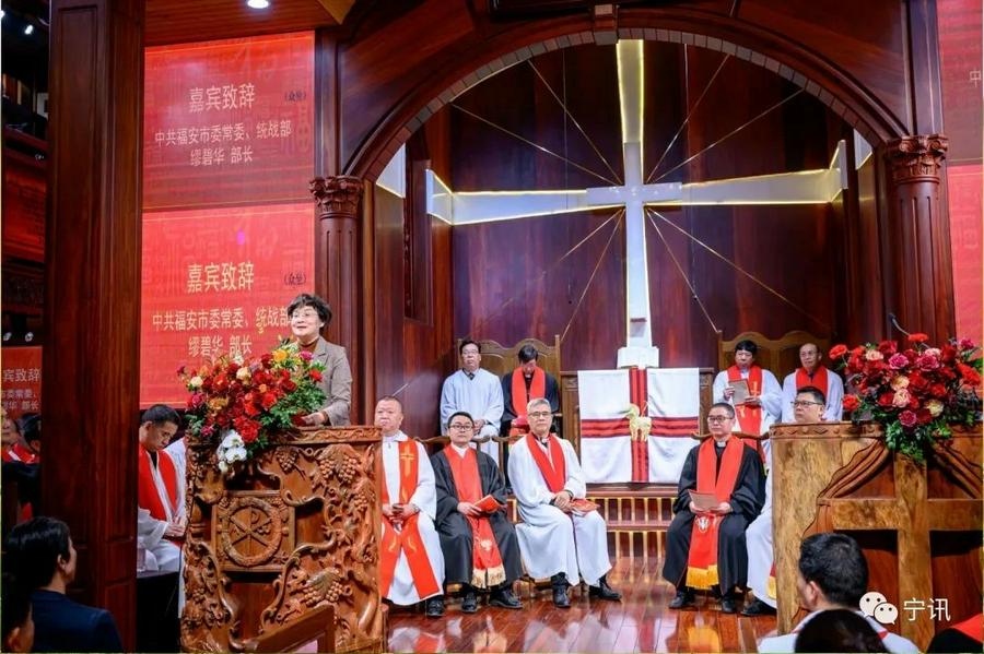 福建省基督教协会副会长施桂明牧师,宁德市基督教三自会主席韦忠信传道,温州市基督教两会副主席、鹿城区基督教两会主席、温州市圣三一堂主任牧师石新民牧师对韩阳堂百年庆典致以祝贺。回顾百年韩阳堂,看见了依靠上帝的重要性和信仰的力量。牧长们盼望在新的历史起点上,教会要以新的使命担当,弟兄姊妹要齐心协力,怀着感恩的心,迎接新的征程,更好地承担社会责任,共同谱写福安教会更加光明的未来。