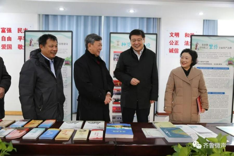 董美琴牧师介绍了山东教会自“济南会议”以来,巩固和发展三自爱国运动的主要成果,以及自觉接受中华优秀传统文化浸润,把优秀传统文化与基督教教义融会贯通,推动中国化神学理论构建和实践探索的做法,表示省基督教两会将以“山东省基督教中国化研究中心”为依托,整合多方力量,重点围绕中国化神学思想、基督教中国化实践路径等进行深入研究,为构建具有中国特色、山东风格的神学思想贡献智慧和力量。