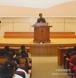本次散学礼由副院长蔡建伟牧师主礼,薛海安牧师祷告,唐洪林博士读经,香港信义宗神学院荣休院长周兆真牧师讲道。在信息宣讲中,周兆真牧师勉励在场师生谦卑归荣耀于神、过圣洁生活、始终高举基督的信仰实践。