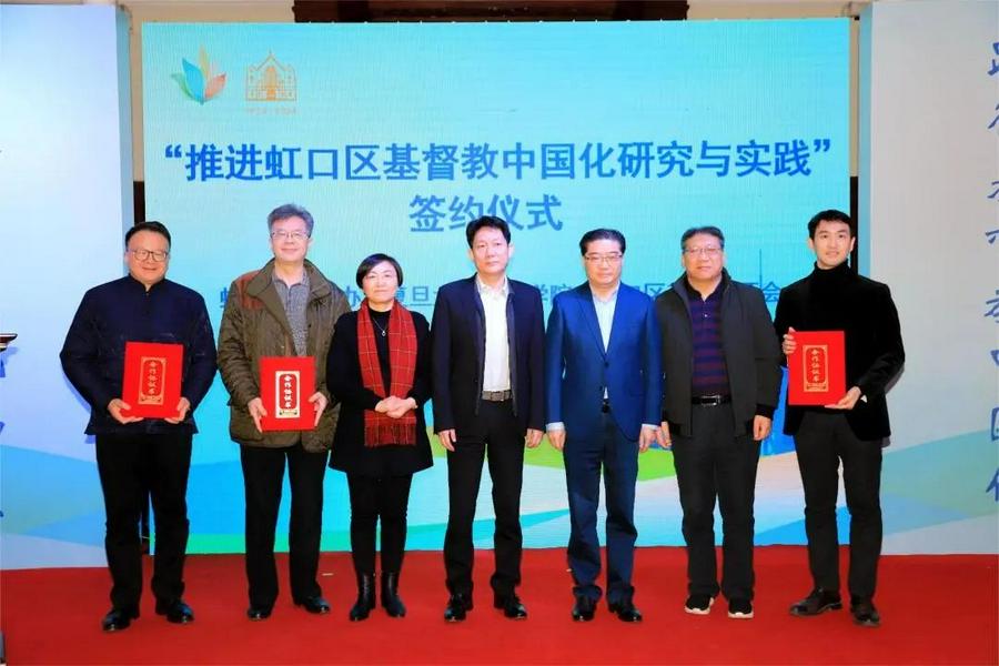 座谈会上,虹口区基督教两会、复旦大学哲学学院、虹口区民宗办签订了三方合作协议,通过资源共享和互动交流,合力推动基督教中国化的理论研究与实践运用。