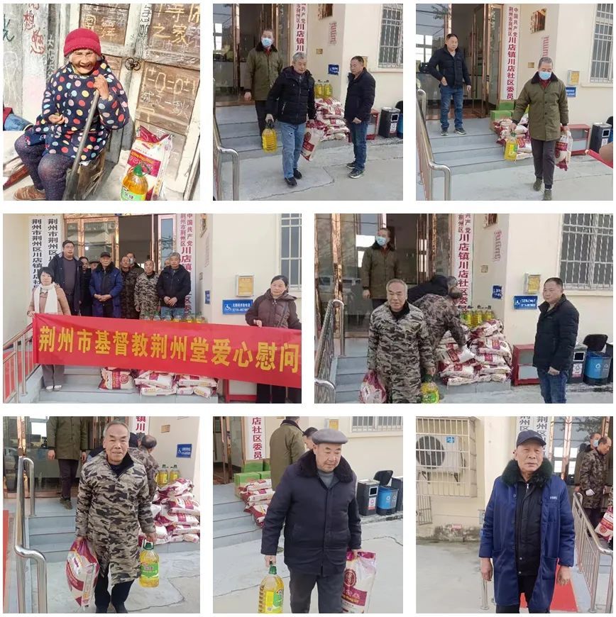 荆州市各地基督教两会、各堂点负责同工带领弟兄姊妹凭着满腔的爱心,把精心预备的爱心物资送到真正有需要的人手中,深入了解不同家庭生活现状与困难,鼓励他们靠主加力以积极的心态面对困难,并向他们表达新春的祝福,探访慰问人员的脚踪遍及敬老院、困难家庭、特殊人群等每一个有需要的地方。