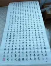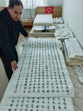 主耶稣基督说:“你们查考圣经(注:或作‘应当查考圣经’),因你们以为内中有永生;给我作见证的就是这经。”阿们!王绵礼弟兄是一个虔诚的信徒,他在查考圣经的同时,以其独有的中国书法形式抄写圣经,就是主基督的美好见证。他自青年开始就苦练书法,有一定的书法根底,在学校和参加工作后,他的书法也曾经在学校和市里获得过荣誉。自从2011年受洗归主后,受圣灵的启发,就想:用钢笔、硬笔等在本子上抄写圣经的大有人在,我要用上帝给我的书法恩赐,用大幅宣纸来书写圣经,以这种形式传福音。