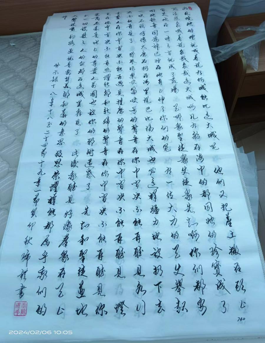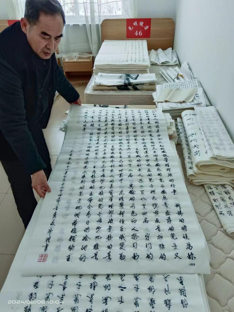 在2024年春节之前,我再次见到了王绵礼弟兄,他谈了新年新的愿望:因为用宣纸抄写的圣经纸和字都大,不便于阅读。他想再用几年的时间以“蝇头小楷”的方式再次抄写一遍新旧约圣经,以飨读者。他表示:感谢神!我想在余生就是用抄写圣经来传福音、来不断地在抄经的过程中灵修,使自己成为神所喜悦的人。