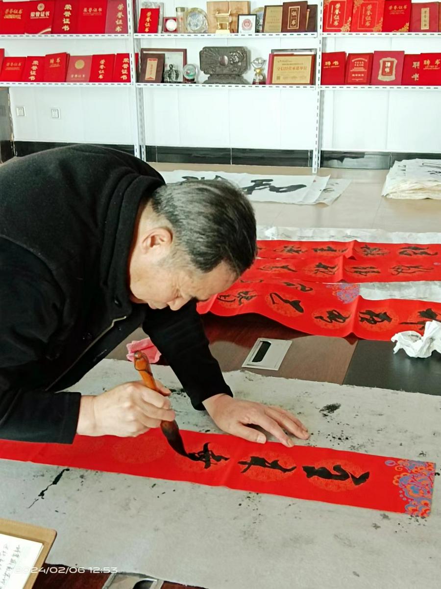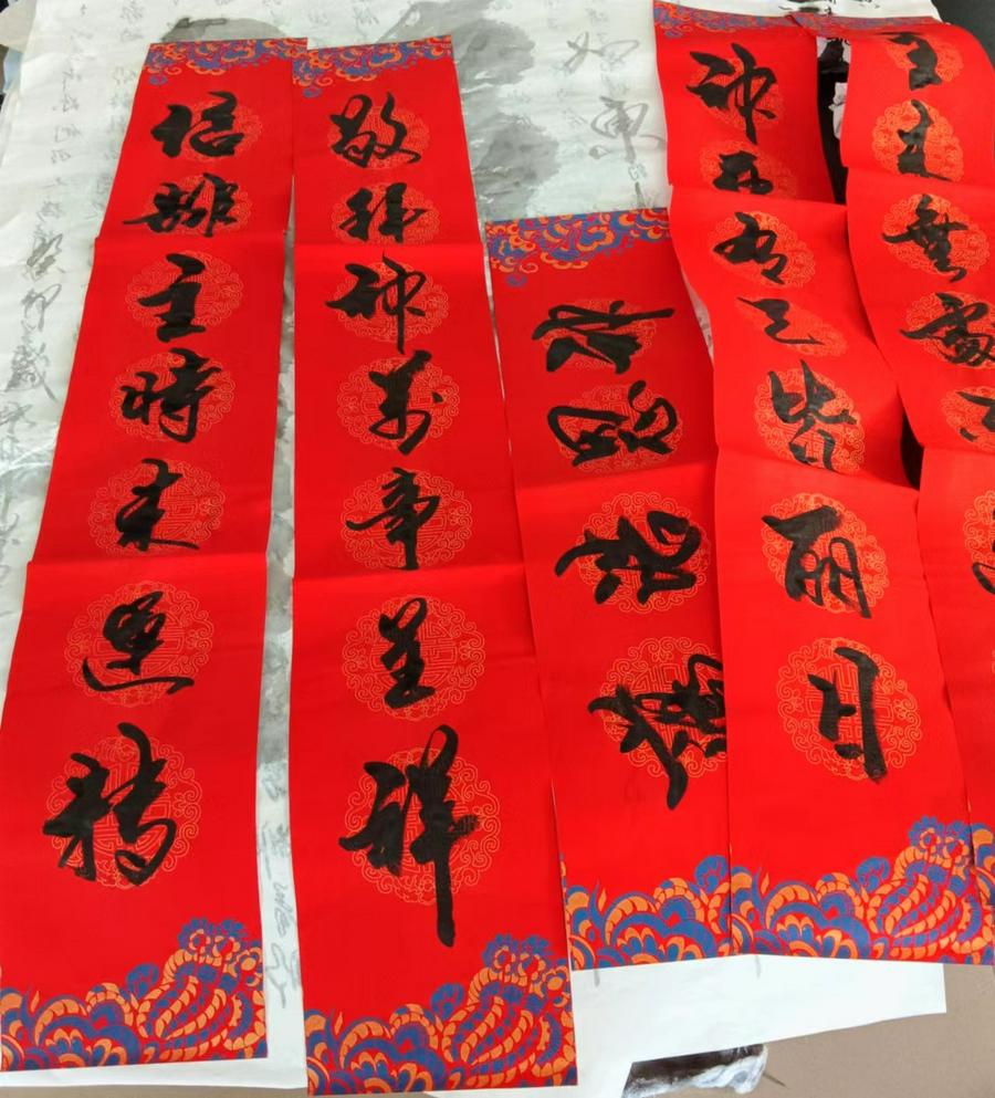 提摩太后书3章16至17节说:“圣经都是 神所默示的,于教训、督责、使人归正、教导人学义都是有益的,叫属 神的人得以完全,预备行各样的善事。”王绵礼弟兄在抄写圣经的过程中,既得到了神的教导,装备了自己,又无数次地向前来观看他抄写的圣经的人们作见证,同时也用自己的书法恩赐为有需要的人们书写圣经金句的书法条幅等。就说今年农历甲辰年前夕,他就为信徒和教会书写了一百多幅春联,并书写了一千余张“福”字送给信主和不信主的父老乡亲。