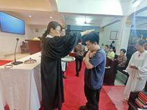 众唱诗歌《永活的主》,主祷文、三一颂之后,顾牧师为会众祝福,齐唱《阿门颂》,礼拜在《愿耶和华赐福给你》的乐声中结束。