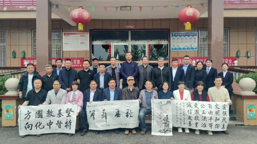 在文化艺术笔会交流现场,诸位书画家,书法家以笔会友,挥毫泼墨,舞动丹青,畅书胸臆。现场笔墨生辉,讴歌伟大祖国,美美与共,创作出一幅幅主题鲜明、内容丰富、形式多样的书法作品。此次笔会引人注目之处,有一位老年长辈积极参加,更激发了广大教职人员对书法书画这一国粹的热情,主题鲜明,学习交流会中所书写的作品,在形式上中堂、水墨、彩绘,都是歌颂伟大党、歌颂社会主义祖国,倡导社会主义核心价值观;大家参与热情高昂,二十多位书法书画艺术家,轮番上阵,舞墨弄文,争相把笔,一试身手,场面十分壮观。
