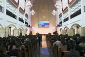 上午9点,泰兴市基督教堂落成感恩崇拜正式开始。感恩崇拜由于松牧师主持,李忠远牧师祷告,王士国牧师读经,陈德宏牧师证道。