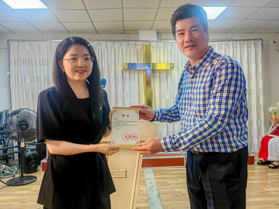 中山市基督教教务委员会会长陈文远牧师为新任场所负责人颁发聘书