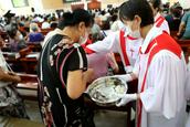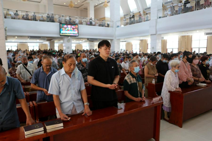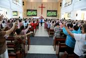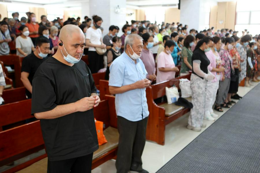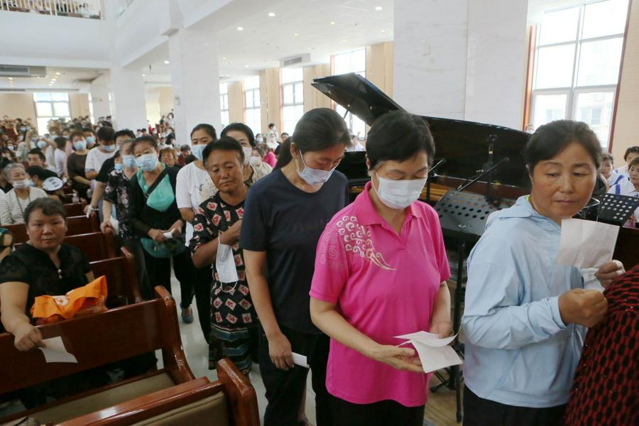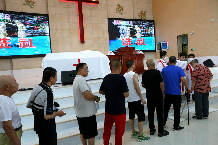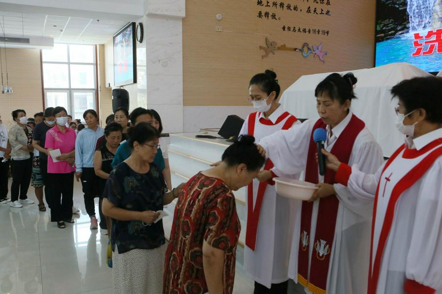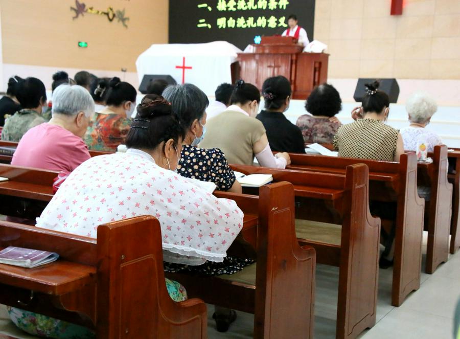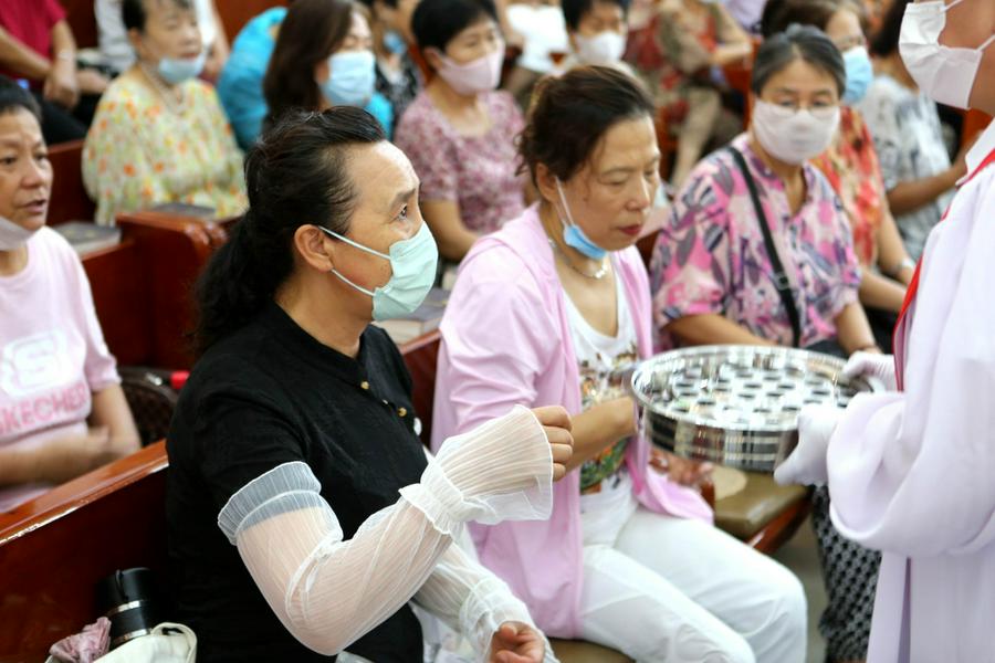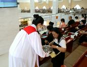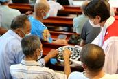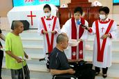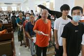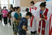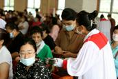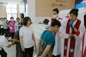 三十多度的酷暑没有信徒的内心火热,挡不住在主日崇拜、赞美和参加圣事的脚步。在上午七点多钟,兴盛教堂就坐满了前来的弟兄姊妹,大家跟随诗班的同工在会前赞美,他们的歌声充满了对上帝的感激和对新生活的期待。