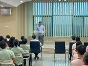 市基督教两会主席兼会长蔡博生牧师发表致辞,回顾过去,主恩满满。自市培训中心开办以来,为全市培养了近一千位优秀的义工骨干,他们在各自堂会里发挥着积极的作用。通过培训中心把全市堂会连结在一起,不断巩固和加强了市两会与堂会之间的亲和力与凝聚力。培训中心将在坚持基督教中国化方向的前提下继续办下去,继续为全市教会做好服务工作。同时也劝勉学员要继续保持谦虚学习的心态,做合神心意的好工人。