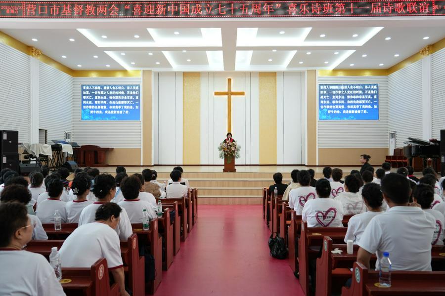“我们的 神啊,现在我们称谢你,赞美你荣耀之名!”恩典无限,神佑中华。赞美敬拜,平安喜乐。营口市基督教两会在辽宁省基督教协会会长、市基督教两会主席侯玉洁牧师的倡导和关怀下连续十多年举办全地区的诗歌联谊会,成为辽宁基督教一道靓丽的风景线。在此次的诗歌联谊会上,各市区基督教活动场所诗班同工个个精神饱满,身着圣洁的服装,引吭高歌,赞美上主,歌颂我们伟大的祖国,既反映了改革开放以来伟大祖国的发展和变化,又唱出了广大基督徒情系中华、矢志不渝的赤子之情和信仰的感恩之情。