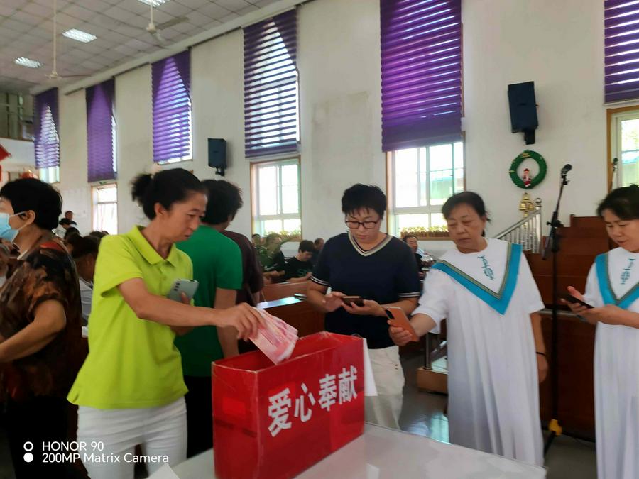 沈阳市辽中区基督教两会所在地辽中区基督教会在2024年9月1日的主日举行了一场特殊的聚会:沈阳市辽中区基督教两会“爱心牵手,风雨同舟,有你有我,让爱回家”为葫芦岛建昌县水灾现场奉献。沈阳市基督教协会副会长、辽中区基督教两会主席、会长、“中国公益事业爱心大使”任传宇牧师在讲道中呼吁会众本着爱国爱教、荣神益人、爱人如己的基督教慈爱精神,为遭受水灾的建昌县的弟兄姊妹献出爱心。“用信心开启蒙福的管道”,在任传宇牧师等教牧同工的带领下,信徒们纷纷慷慨解囊,有的奉献现金、有的扫码奉献,为建昌水灾捐款,现场呈现出来自于基督爱心的热心场面。
