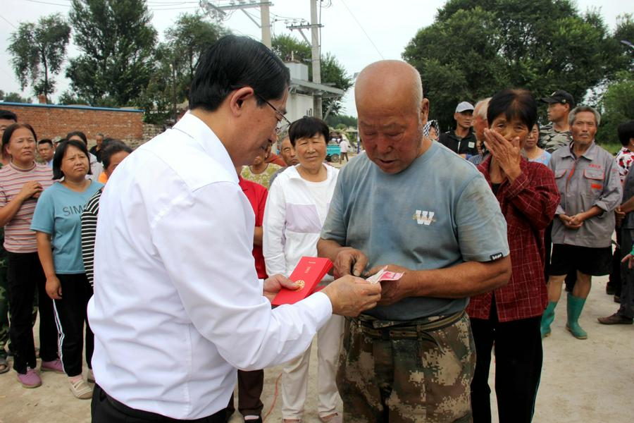水灾无情人有情,抗灾救灾献爱心。在救灾现场,父老乡亲们如同看到亲人一样,欢迎风尘仆仆、远道而来的辽中区基督教两会的弟兄姊妹。任传宇牧师目睹水灾情况,拉着乡亲们的手,眼睛里噙着泪水、声情并茂地发表了慰问讲话,他带去辽中区弟兄姊妹的问候,鼓励受灾的村民众志成城,早日重建家园。大家虽然不认识,但是爱把大家连接在一起,一地有灾各地来帮。在慰问现场,任延博教士等同工不辞辛苦把一袋袋的米、一件件的衣物、一箱箱的食品等物资发放给受灾的同胞,代表了辽中区基督教信众的一颗颗爱心、一片片真情,受到了灾民和当地村镇领导的高度好评。当辽中区基督教两会的慰问同工们离开建昌灾区的父老的时候,大家怀着感恩的心,挥手告别,祝好人一生平安。此次辽中区基督教两会和信众,不仅为灾区提供了物质上的帮助,更为灾区人民带去了精神上的慰藉和鼓励。