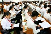 今天的昌图教堂,内外充满着喜乐的氛围,来自昌图县四面八方的各位牧长、传道人等70多位代表欢聚在圣殿。大会在嘹亮的国歌声中开幕,参会的信众同唱《我爱中国教会歌》。
