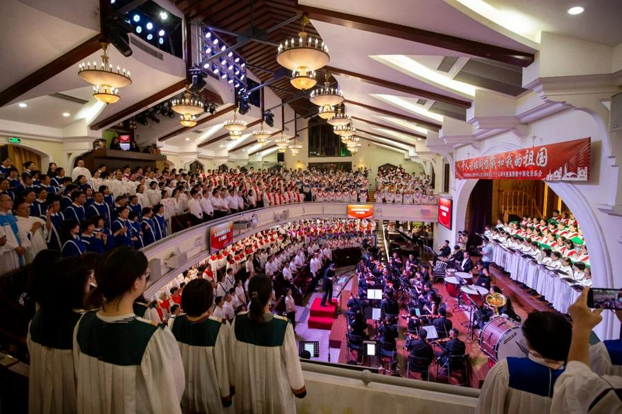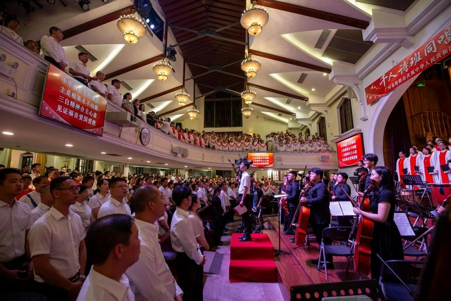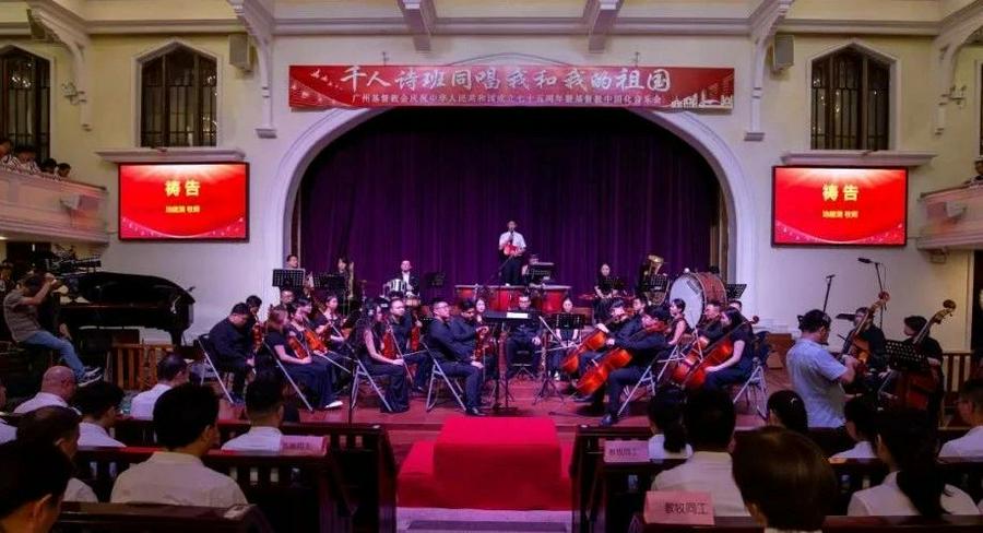 为庆祝中华人民共和国成立七十五周年,在新时代新征程系统推进基督教中国化,2024年9月7日晚上,广州市基督教两会在东山堂顺利举办“千人诗班同唱我和我的祖国——庆祝中华人民共和国成立75周年暨基督教中国化音乐会”。广州市基督教两会教牧同工以及全市诗班代表,共1000余人参与活动。