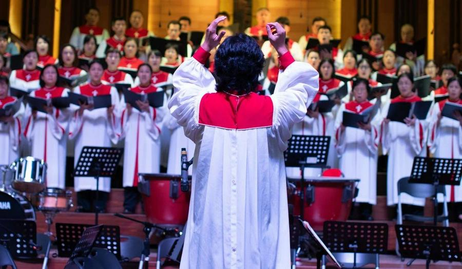 第二乐章由堂会诗班代表联袂献唱中国传统圣诗,以礼赞之音诠释中华优秀传统文化,以时代之声唱响基督教中国化,祝福中国教会,祈愿山河锦绣、国家富强。