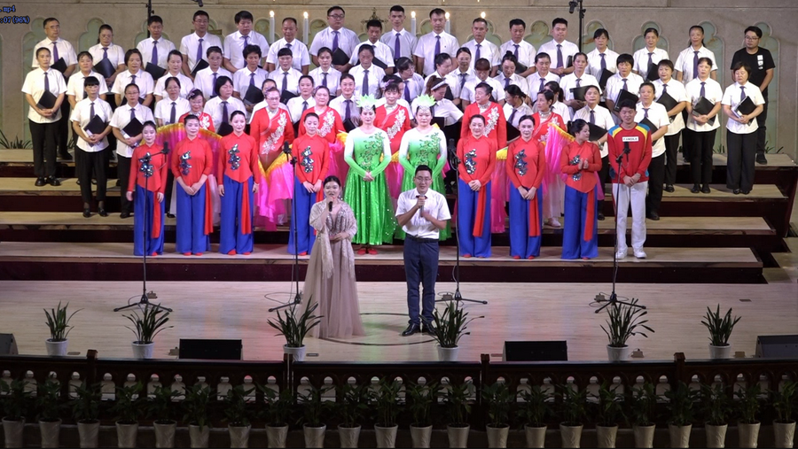 同日下午,盐城市基督教堂还举行了庆祝新中国成立75周年的文艺汇演。演出以小合唱《天耀中华》拉开序幕,随后,二胡独奏《赛马》《拔根芦柴花》、女生二重唱《万疆》、舞蹈《我爱你,中国》、女生四重唱《如愿》、歌伴舞《雪龙吟》、朗诵《汇聚磅礴力量,共筑中国梦想》、独唱《春风十万里》、大合唱《我和我的祖国》《歌唱祖国》等丰富多彩的节目接连上演。