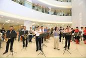 活动中,爱之源的金秋管乐队与军鼓队的志愿者们演奏了《我和我的祖国》、《红旗颂》等曲目,雄壮的乐曲激发了在场听众和着乐曲挥动国旗,高声歌唱,抒发每个人对祖国的爱国情怀,在音乐声中为祖国献上诚挚的祝福,祝愿祖国明天更辉煌。