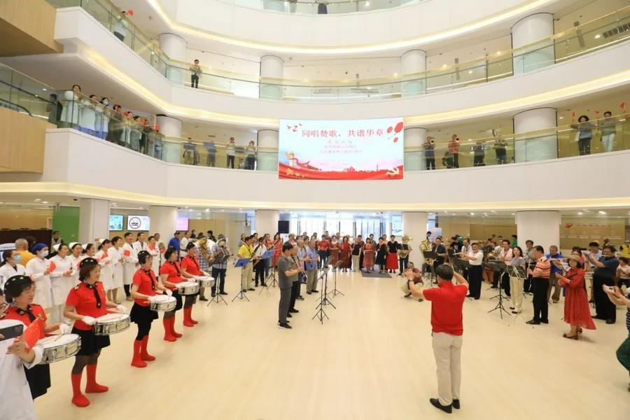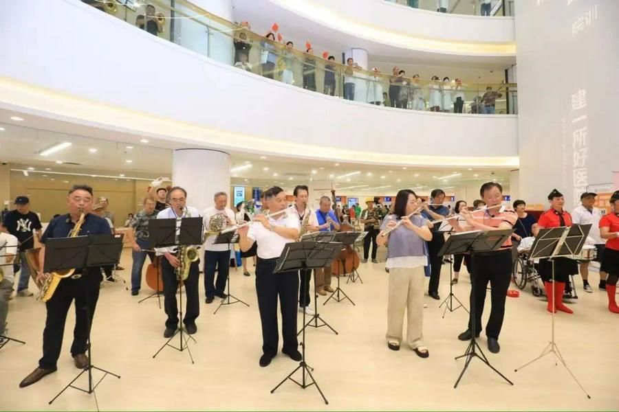 9月30日上午,杨浦区基督教两会下属的爱之源红十字文艺志愿者队与杨浦区中心医院联手举办庆祝新中国成立75周年及“人民城市”理念提出5周年音乐快闪活动。