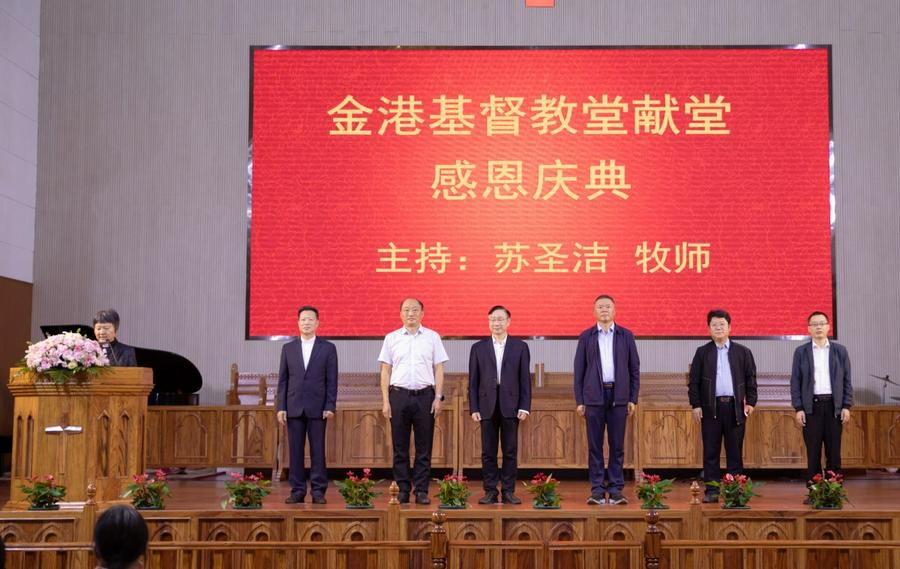 10月19日,张家港市金港基督教堂举行献堂感恩典礼。江苏省基督教协会会长、苏州市基督教两会主席(会长)何介苗牧师,江苏省基督教三自爱国会秘书长尹林虎牧师受邀出席典礼。苏州市民宗局张建国副局长、张家港市民宗局金俊龙局长等有关领导莅临祝贺。