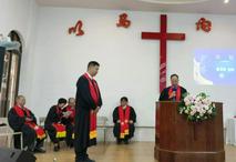 范烨恒牧师代表受按立牧师发表诚挚答谢辞,表示愿效法基督及老一辈牧者忠心侍主榜样,引导信徒爱国爱教、遵纪守法,不忘初心、至死忠心、尽心牧养主的群羊。按立圣职典礼在李信方牧师的祝福中圆满礼成。
