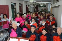 每年敬老节,是他们最为忙碌的时刻。教会也大力支持,连续多年举办敬老感恩礼拜,为七十以上的老者胸佩红花,安排坐在前排,大家一起欢聚主前,数算神的恩典,见证神的荣耀。教会牧者送上祝福、分享主的话语,大家欢聚一堂载歌载舞。许多长者也按捺不住内心的喜悦之情,唱歌跳舞,感恩不尽。教会预备了爱筵,还发放象征福寿步步登高的糕馍。